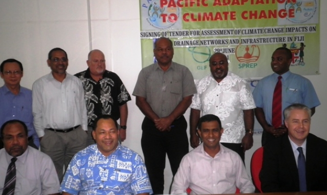 Under the Pacific Adaptation to Climate Change Project Fiji, the Secretariat of the Regional Environment 000961_P6280162Programme with the Fiji Government's Land and Water Resources Division awarded the tender to NIWA and partners to carry out an impact assessment on drainage networks an Climate change impact assessment on drainage networks and infrastructures socioeconomic vulnerability and adaptation assessment.