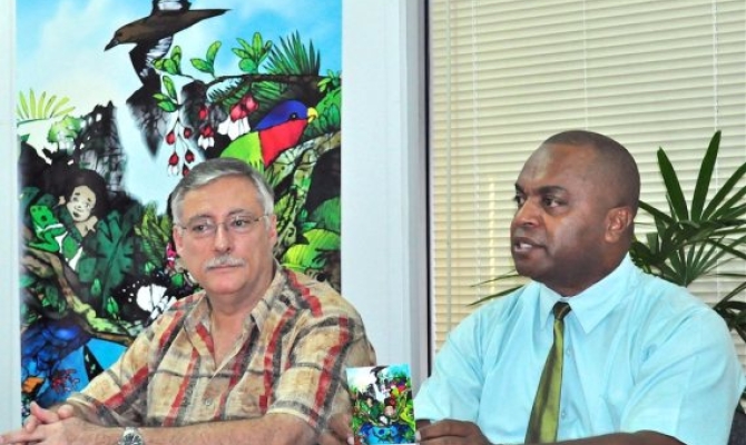 Photo courtesy of the Fiji Ministry of Information: L - R Stuart Chape of SPREP, Mr. Jope Davetanivalu - Fiji Department of Environment