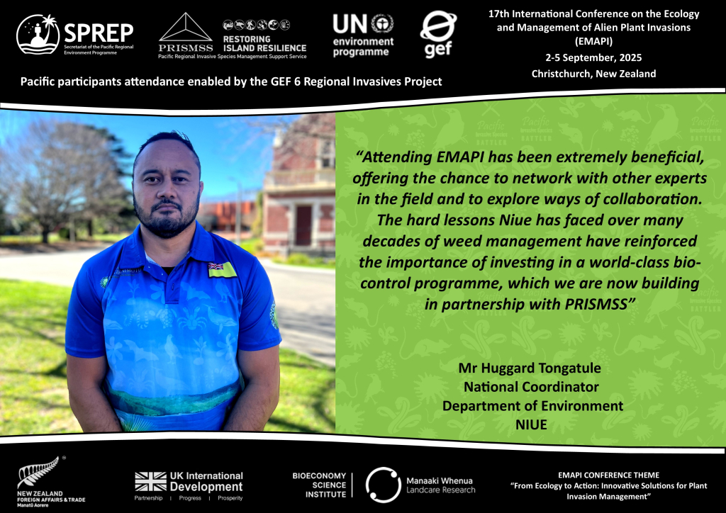 Mr Huggard Tongatule from the Niue Department of Environment reflected on that, “the most valuable takeaway from the EMAPI Conference was the opportunity to learn about the excellent work happening in the field of invasive weed management, not only in New Zealand but also globally.”