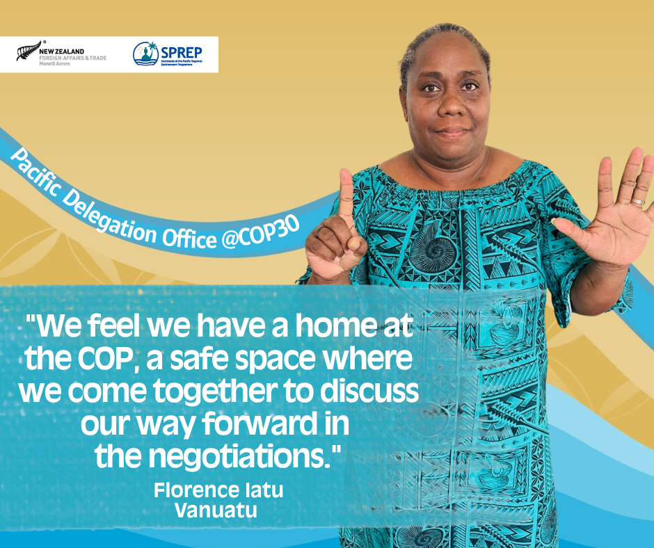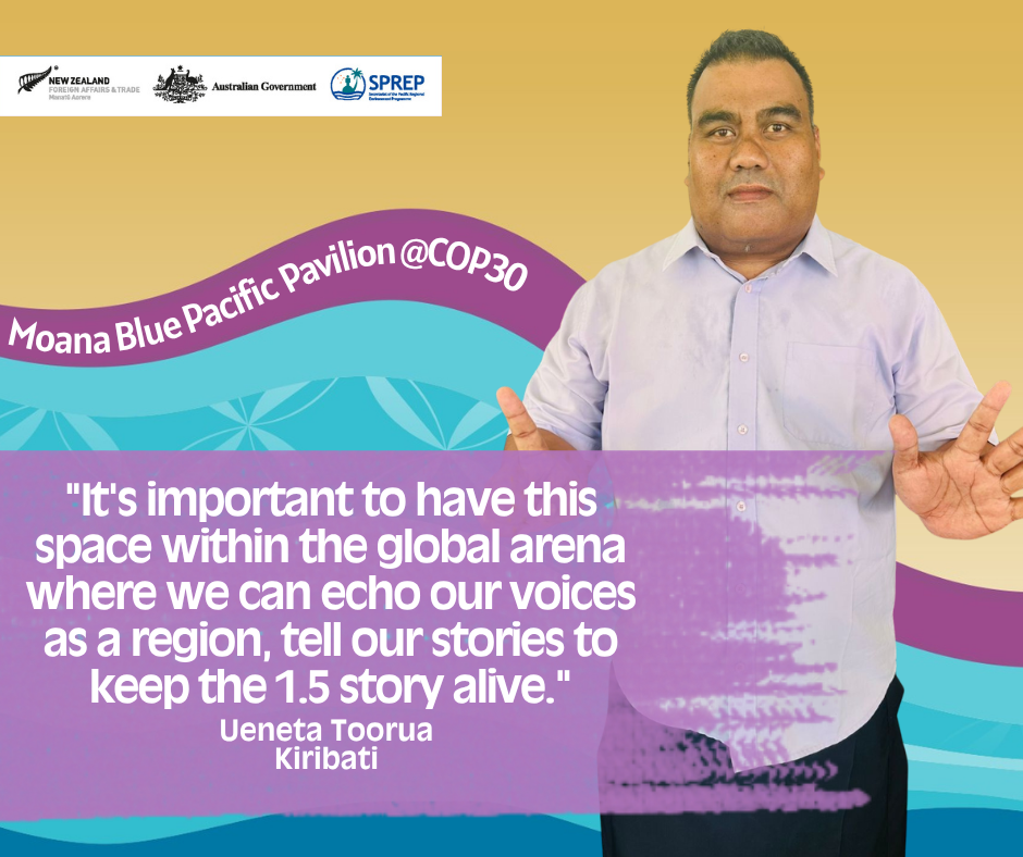 The Moana Blue Pacific Pavilion at COP30 is a Pacific partnership with the Governments of Australia and New Zealand managed by the Secretariat of the Pacific Regional Environment Programme (SPREP). The Pacific Delegation Office at COP30 is a Pacific partnership with the New Zealand Government managed by the Secretariat of the Pacific Regional Environment Programme (SPREP). They will be featured at the Thirtieth Conference of the Parties to the UN Framework Convention on Climate Change hosted in Belem, Brazil from 10 - 21 November 2025.