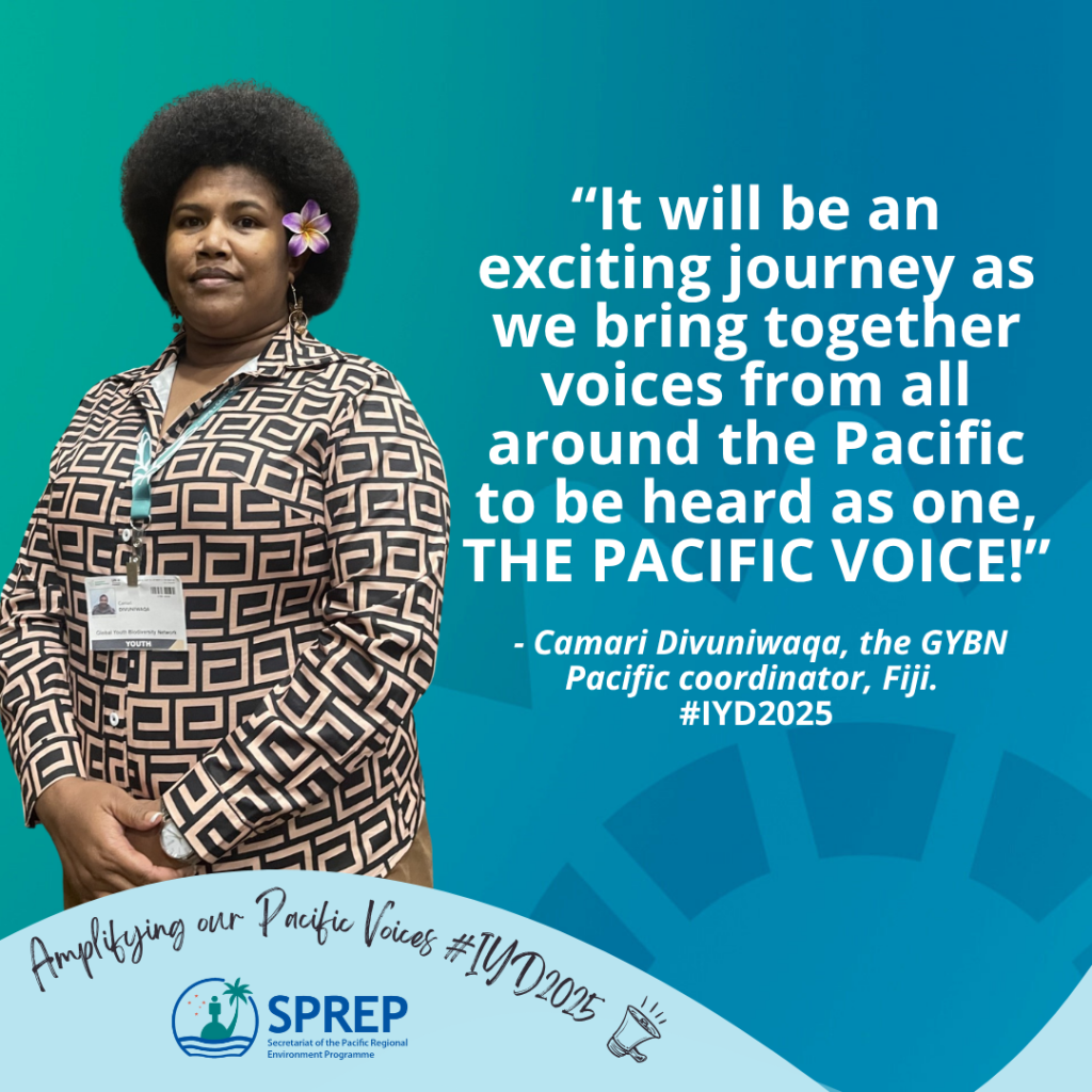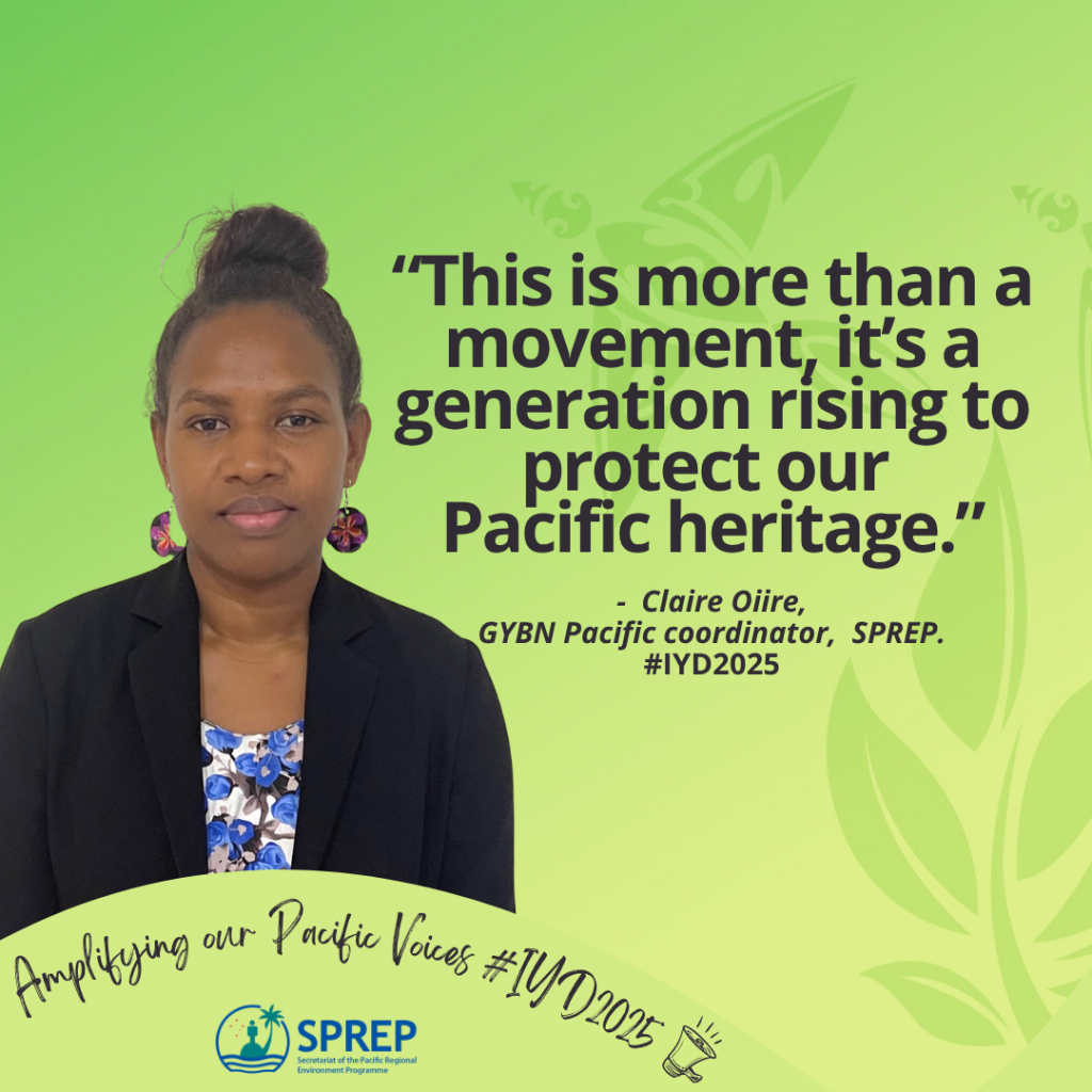 “As the official Pacific chapter of the Global Youth Biodiversity Network under the Convention on Biological Diversity (CBD), we bring together young leaders aged 18–35 from across the Pacific to shape biodiversity policies, lead environmental action, safeguard our unique ecosystems, and celebrate traditional knowledge that has sustained our islands for generations,” said Ms Claire Oiire, the GYBN Pacific coordinator of SPREP.
