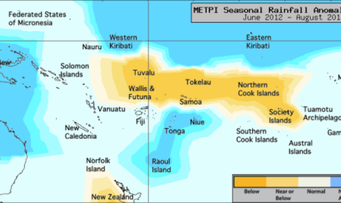 After two years of La Niña conditions which led to drought in Tuvalu, Tokelau and Samoa, the Pacific is expected to experience El Niño conditions after August this year. El Niño conditions usually cause less rainfall over many of the Pacific Islands, particularly in the western Pacific, and more rainfall near the equator in the central Pacific.