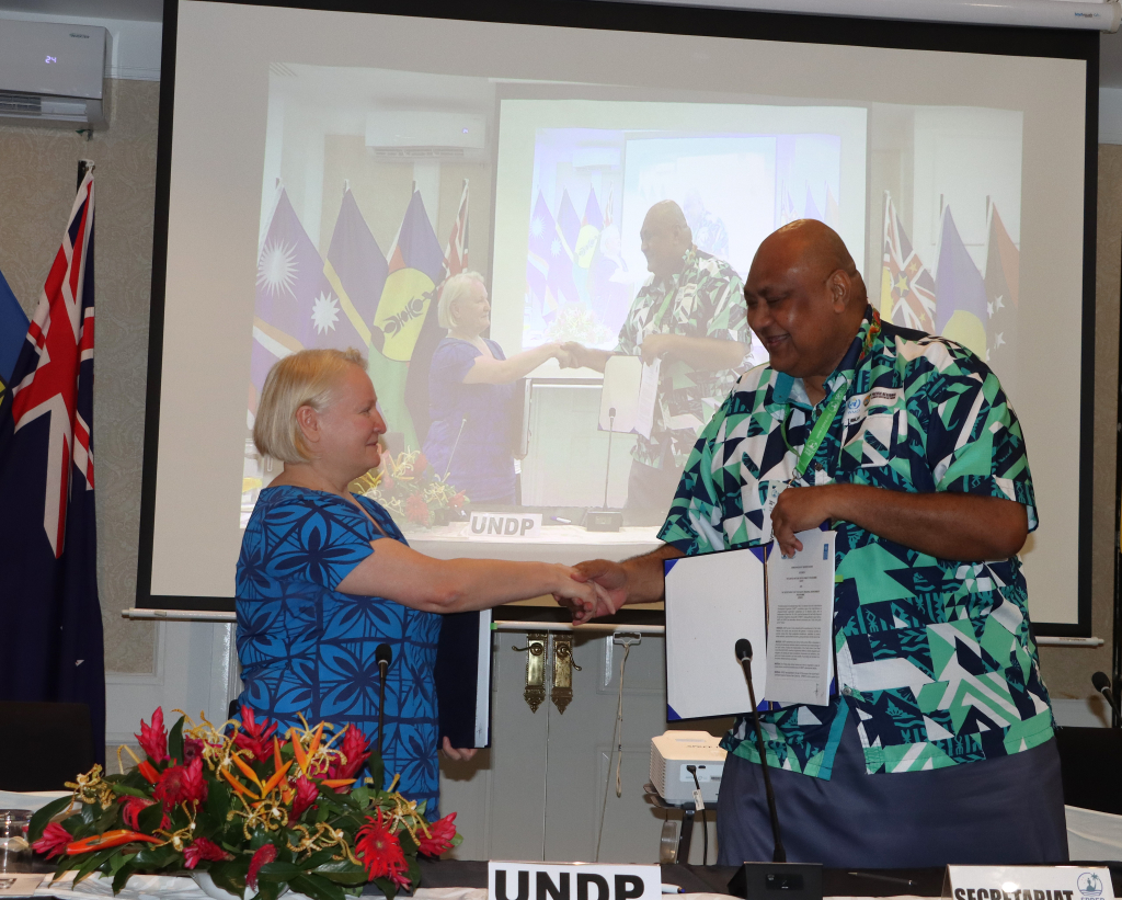 As the mandated inter-governmental organisation of the Pacific island countries to protect the Pacific environment, SPREP Director General, Sefanaia Nawadra said: “We are extremely grateful on behalf of our Pacific members to be able ink this most important partnership with UNDP.