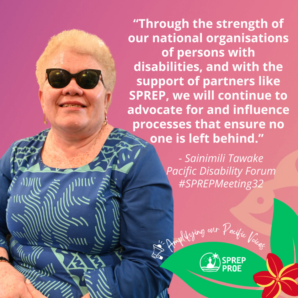 “Through the strength of our national organisations of persons with disabilities, and with the support of partners like SPREP, we will continue to advocate for and influence processes that ensure no one is left behind. This MOU symbolises our collective aspiration: to advance resilience, equity, and justice for all peoples of the Pacific, today and for generations to come. Together, we embark on this journey with optimism, unity, and a shared belief in the transformative power of partnership,” said Ms. Sainimili Tawake, CEO of the Pacific Disability Forum.