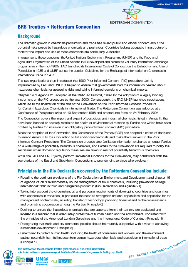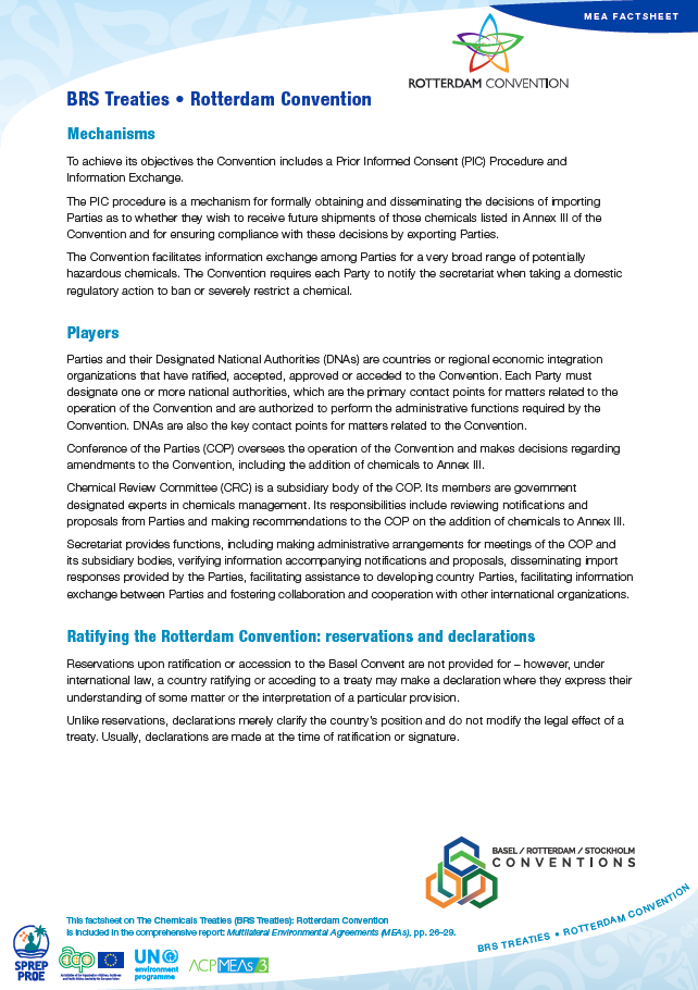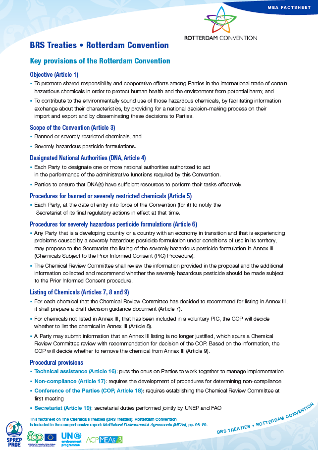 MEAs Rotterdam Background MEAs Rotterdam Key Provisions MEAs Rotterdam Mechanisms Players Ratifying MEAs Rotterdam Rules of Procedure MEAs Rotterdam Milestones